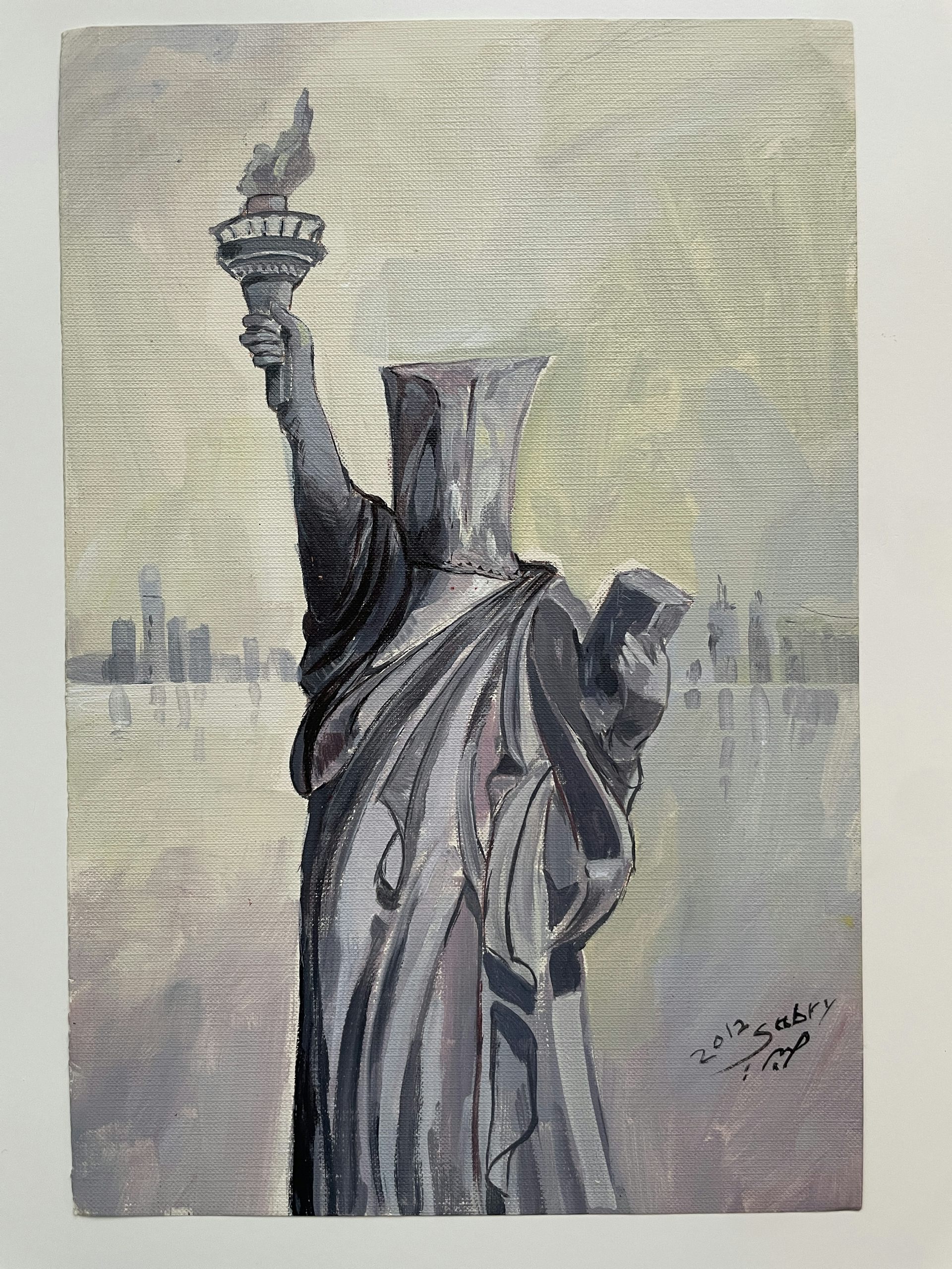 Qurashi pintando la Estatua de la Libertad. Sabri Mohammad Ibrahim Al Qurashi,