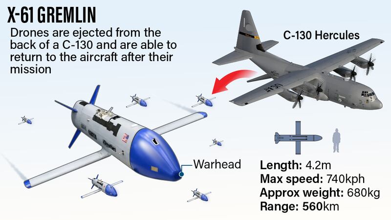 El Pentágono también ha experimentado con el lanzamiento de drones desde un avión de transporte, con el