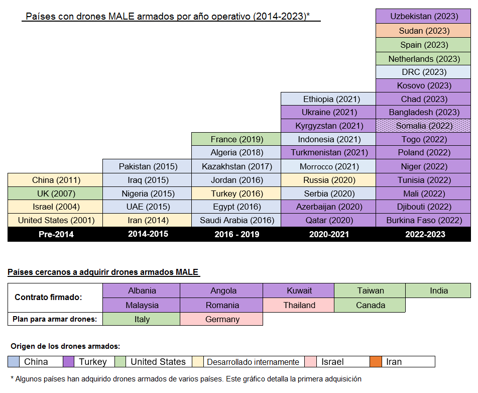 El siguiente gráfico, proporcionado por Drone Wars UK, muestra qué países