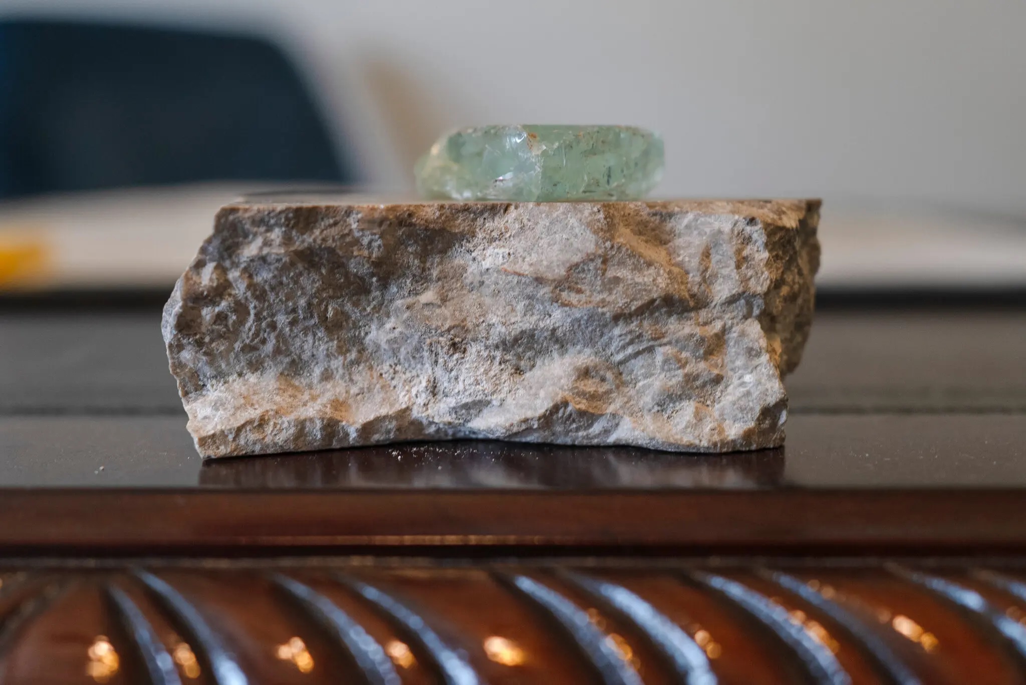 piezas del World Trade Center en su escritorio. Crédito... Micah Green para The