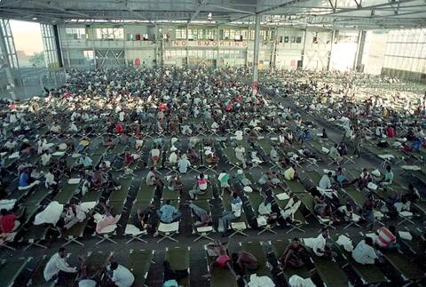“campamento” de migrantes para cubanos que huyen en la cojín marcial de la Bahía