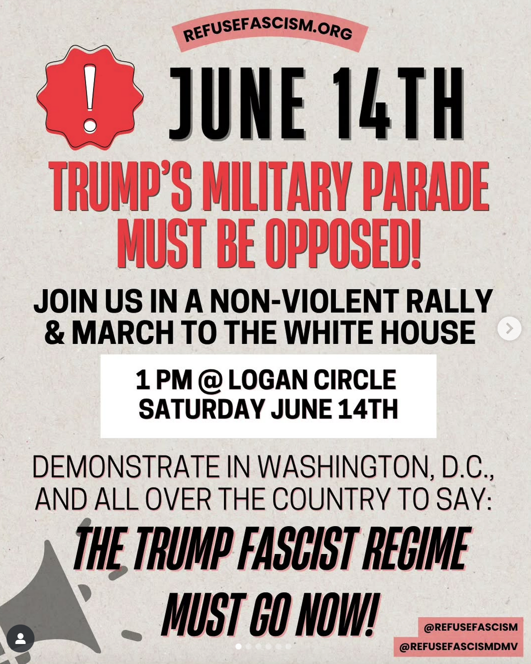 El sábado 14 de junio, RefuseFascism.org te llama a unirte a otros en una marcha no violenta