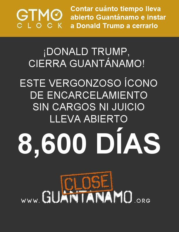 El cartel está disponible en el sitio web Gitmo Clock, que cuenta en tiempo real cuánto tiempo lleva abierto Guantánamo y