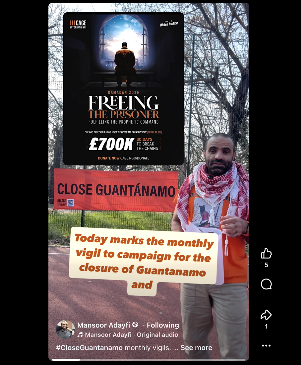 que el exrecluso Mansoor Adayfi realizó una vigilia en solitario en Belgrado, y