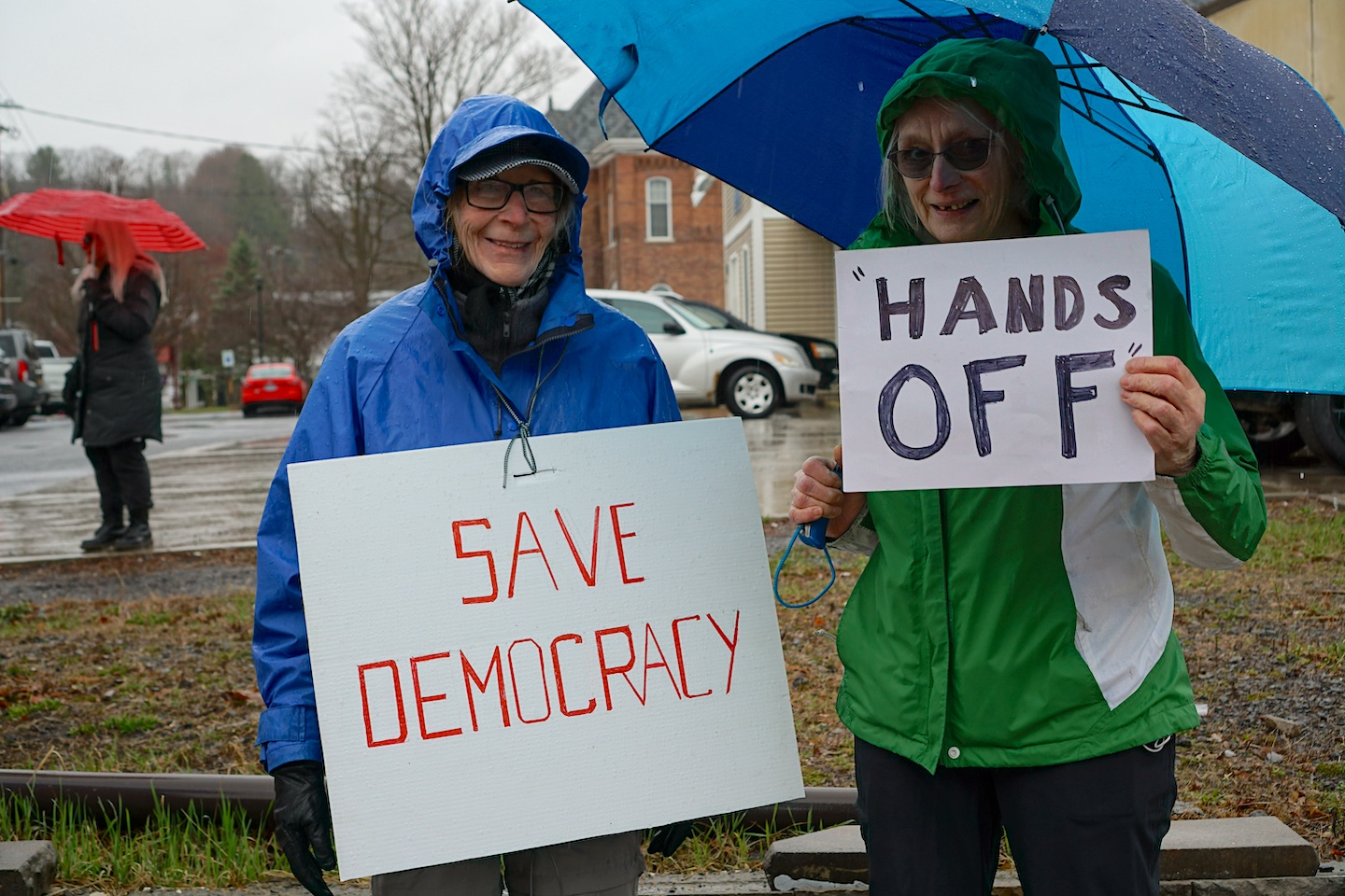Activistas con los Peacemakers del condado de Schoharie en su vigilia en Cobleskill, NY, el sábado