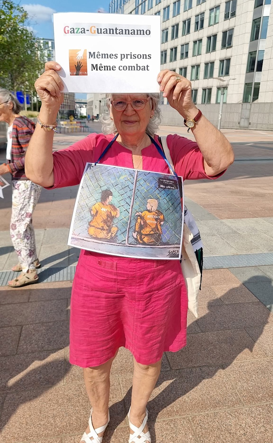 Otra foto de Bruselas, en la que se hace una acertada comparación entre las prisiones de Gaza y Guantánamo.