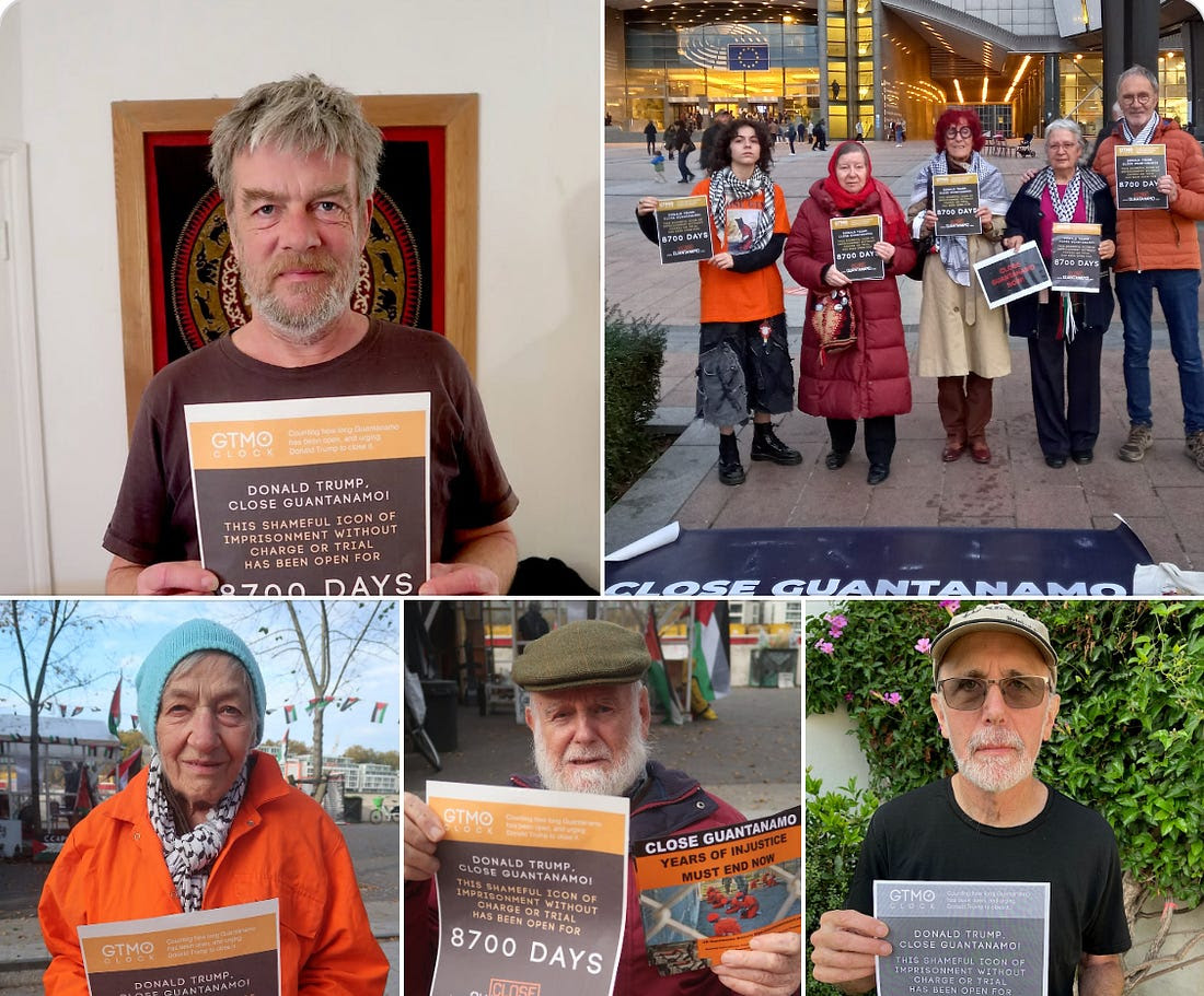 Fotos de las vigilias mensuales mundiales por el cierre de Guantánamo el 5 de noviembre de 2025. En