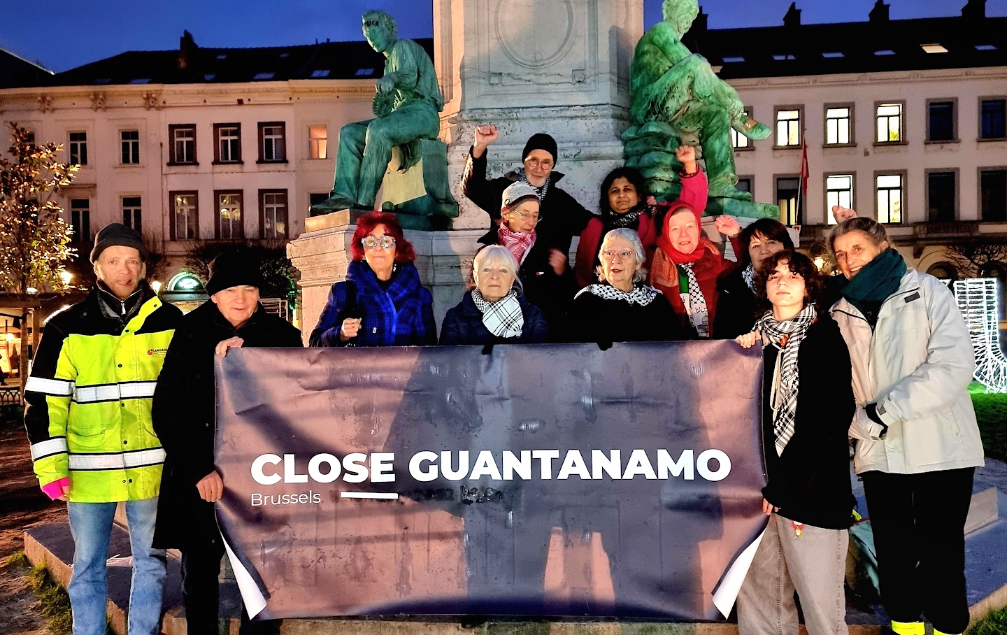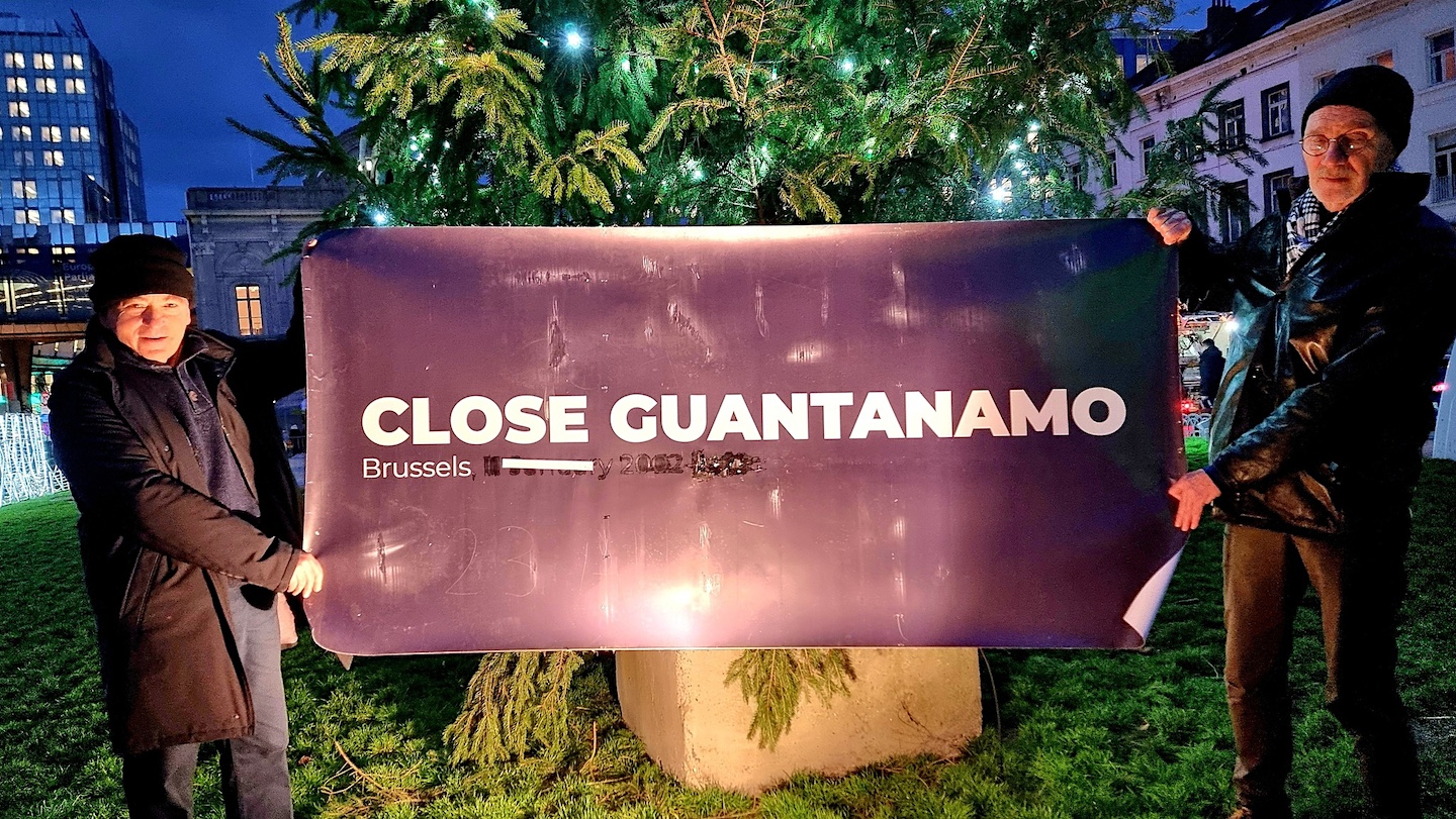 La pancarta “Cerrar Guantánamo” en Bruselas.