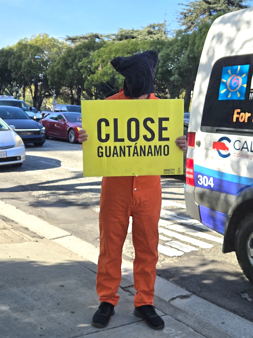 micrófono y habló con fuerza sobre Guantánamo y sus prisioneros sin condenar