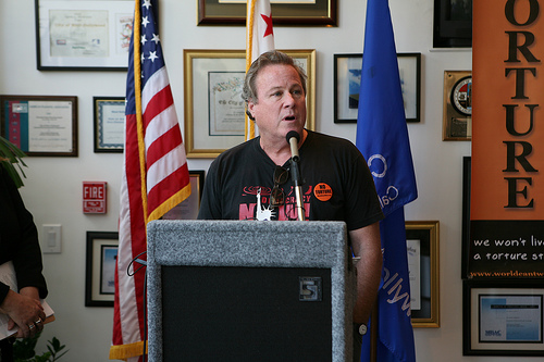 of The World Can't Wait, the MC for the event; Mark Rapkin, a Los Angeles