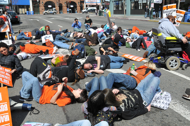 múltiples actos de "die-ins" (tenderse al suelo como "muertos").