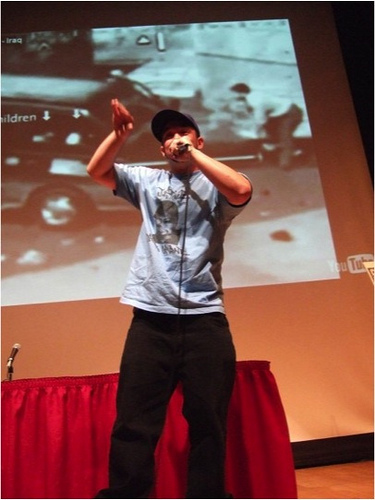 Soldados usa el video Asesinato colateral en una presentación en una escuela. |