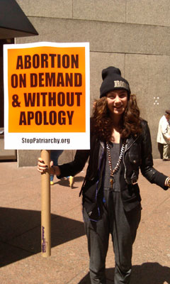 calcomanías y pancartas de "Aborto a Solicitud y Sin Disculpas", ¡éramos