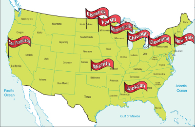 desde ambas costas de Estados Unidos, haciendo escalas y movilizando apoyo sobre
