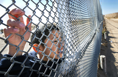 Un joven mexicano observa a la Patrulla Fronteriza al otro