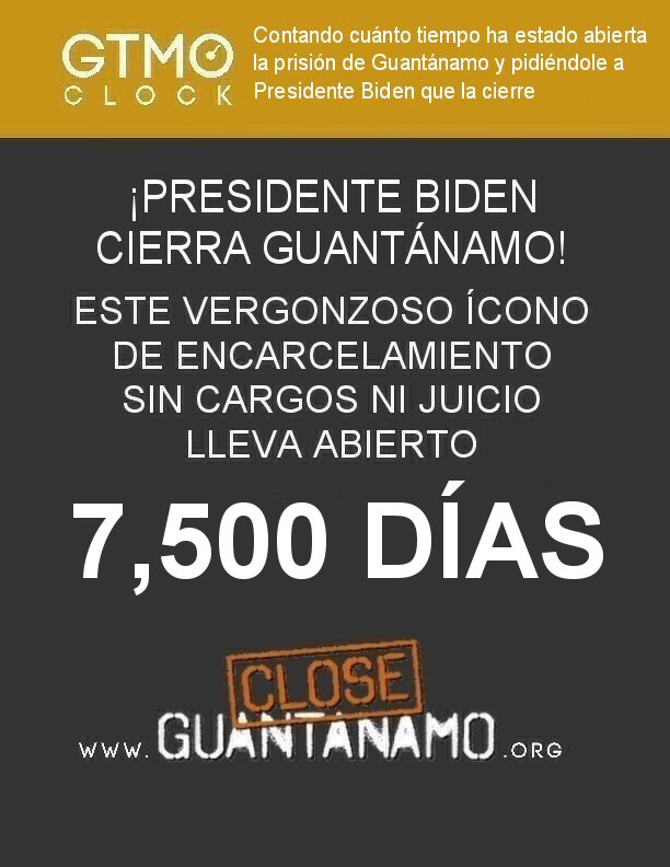 Las fotos se publicarán aquí: https://www.closeguantanamo.org/Gitmo-Clock-2022-photos.