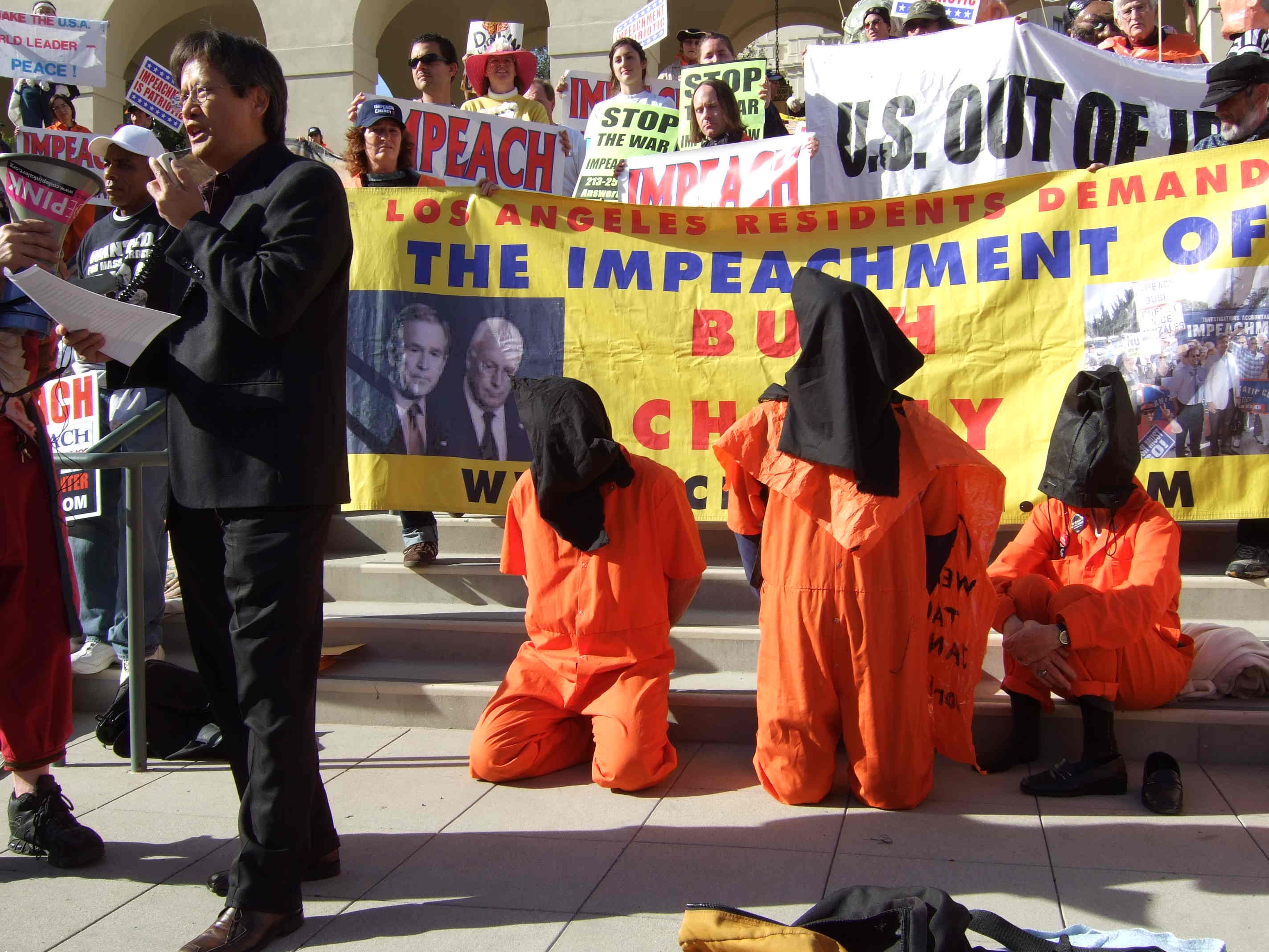 Evans of CodePink, Dennis Loo of World Cant Wait, Peter Thottam of the National
