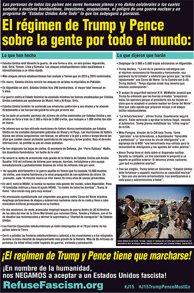 intereses de la humanidad, el Régimen de Trump y Pence “¡tiene que MARCHARSE!”.