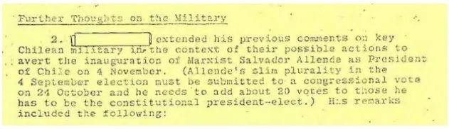 para evitar el gobierno de Allende, y descarta a las fuerzas armadas chilenas