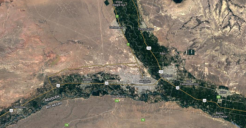 entre los ríos Limay y Neuquén. / Juega Google Maps