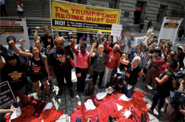 fascista del régimen de Trump y Pence y, a través de protesta dramática,