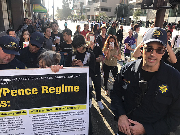 plaza Sproul en protesta por el discurso del fascista Ben Shapiro en la