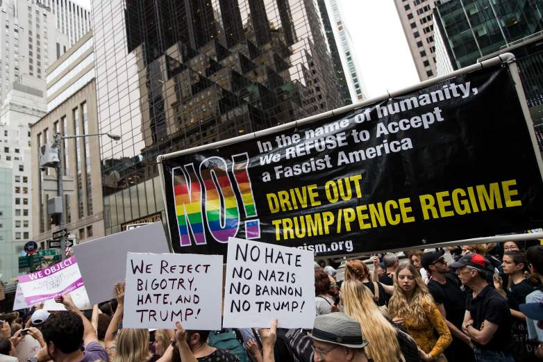 para protestar frente a la Torre Trump a unas cuadras del hotel donde celebraba