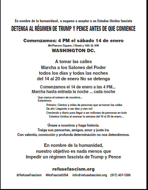 El martes 10 de enero los manifestantes de RefuseFascism.org interrumpieron la
