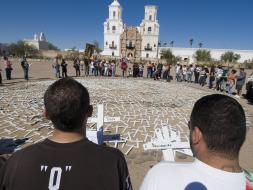 provenientes del lado estadounidense de la cerca metálica que atraviesa Nogales.
