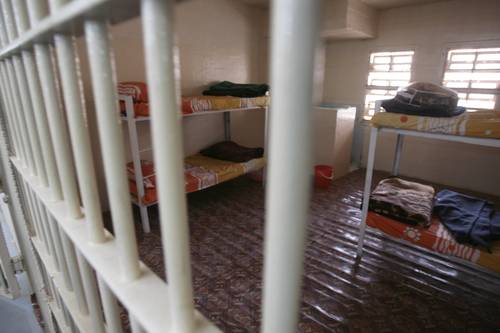 estado encadenado por las muñecas al techo de su celda durante gran parte de los