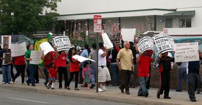 Unas 75 personas protestaron enfrente de Overhill Farms, la compañía más