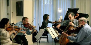 Condoleezza Rice, al centro, con su grupo de cámara; desde la izquierda, Soye