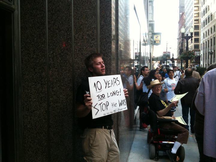 8 de octubre en Chicago contra La guerra y la ocupación en Afganistán que lleva