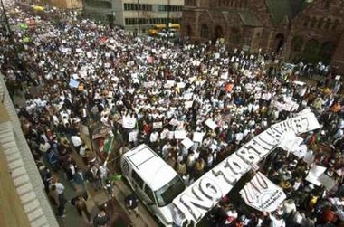 Down" y se oía a la gente corear "Fuera Bush, Si se puede". Marchamos por horas