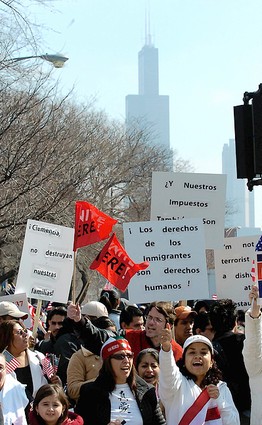 documentos como criminal. La protesta fue una de las más grandes en Chicago en