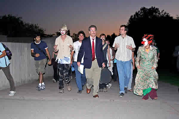 La tarde del miércoles, unos manifestantes estudantiles vestidos como payasos