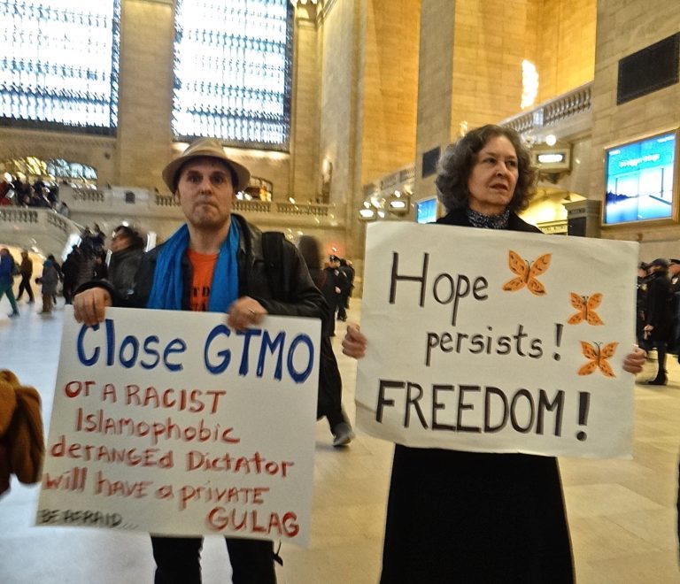 ¡CIERRA GUANTÁNAMO, TRUMP! Acciones del jueves en la Estación Grand Central de Ciudad de Nueva York