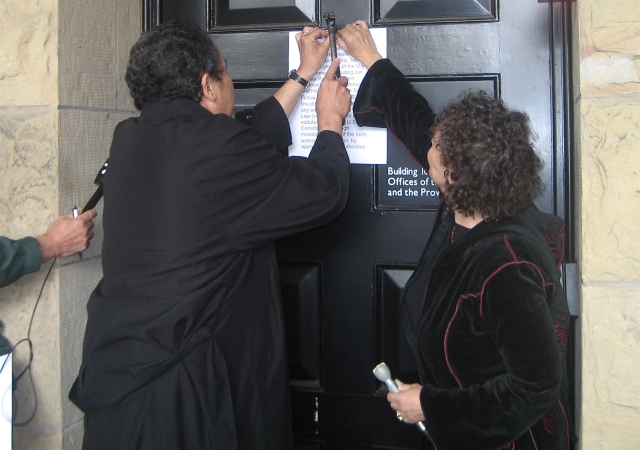 clavamos una petición a la puerta de las oficinas del presidente de la