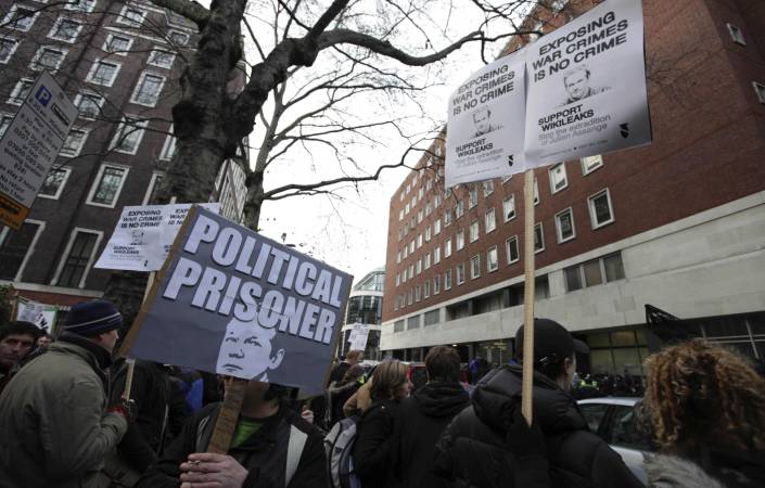 Londres. Seguidores del fundador de Wikileaks protestan en las afueras de la