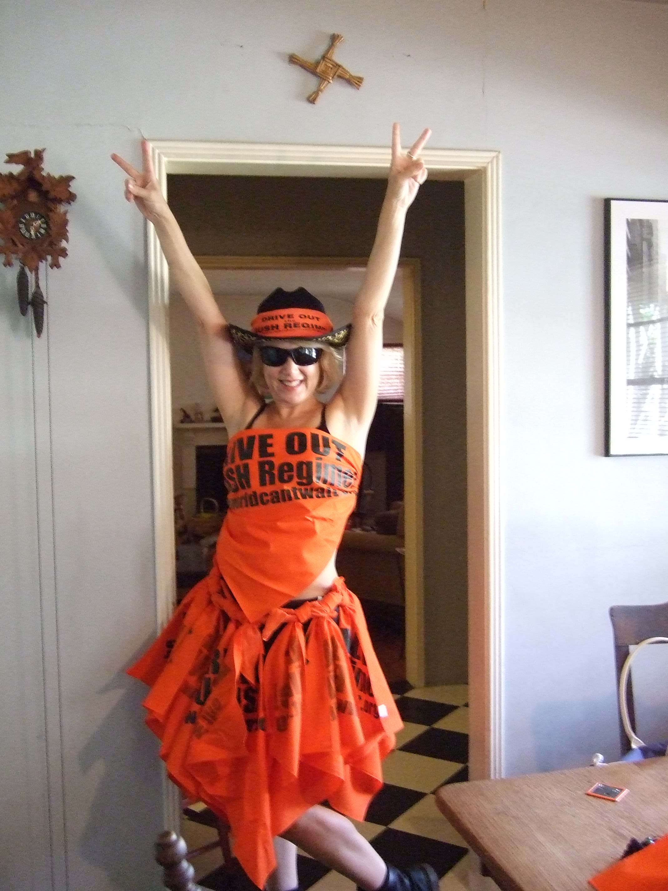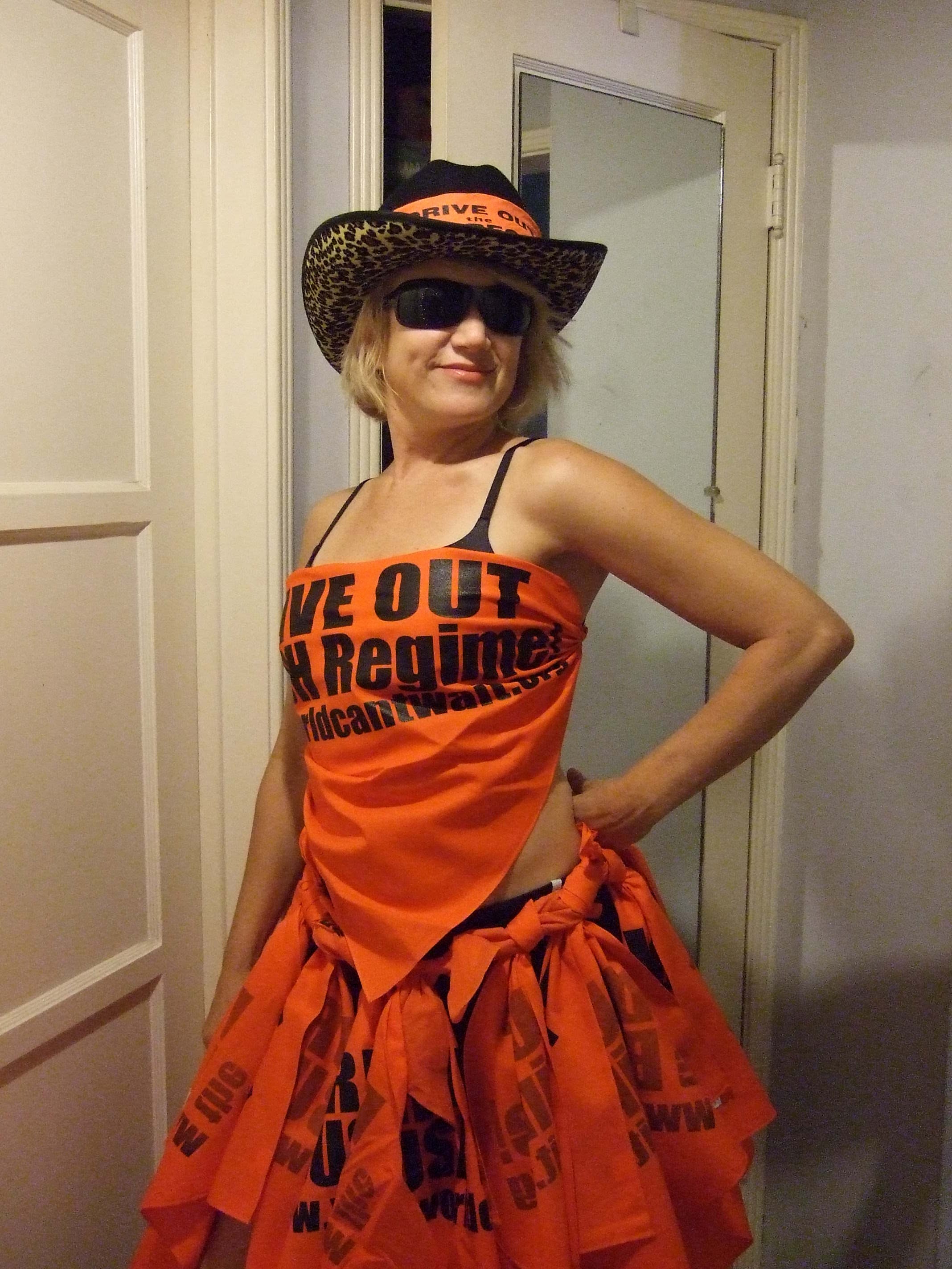 Junction Street Fair Sunday afternoon. Clad in an outfit constructed entirely out of DIN Orange Drive