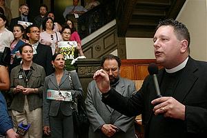 oficina del gobernador de Massachusetts Mitt Romney, durante una protesta en
