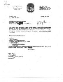departamento de policía de Redwood City, California, firma una carta del 24 de