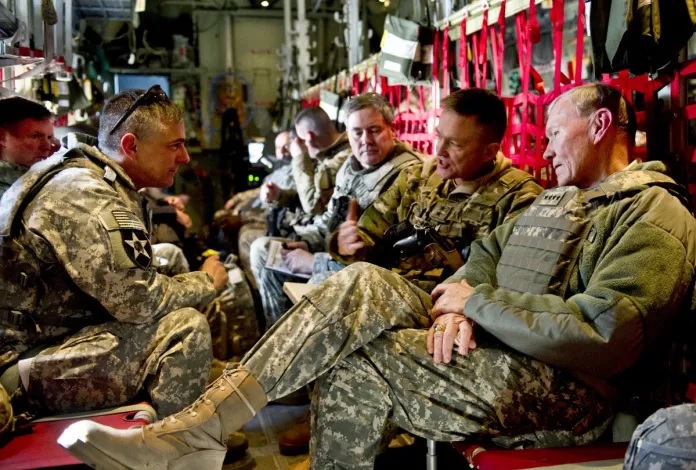Martin Dempsey, a la izquierda, y Steven Townsend, el actual comandante de
