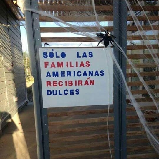"Solo las familias americanas recibirán dulces" se lee en el cartel, omitiendo
