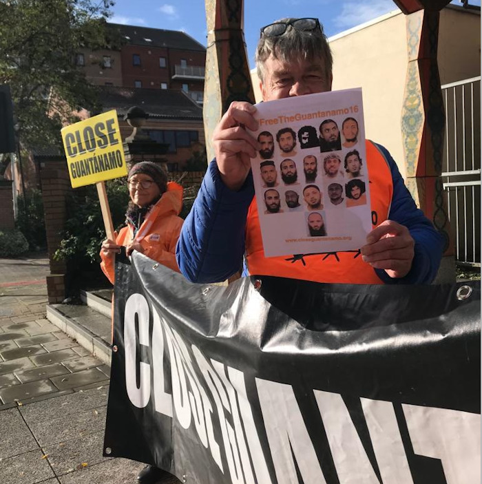 y a los coches pitar por el cierre de Guantánamo. Foto de UK Guantanamo Network