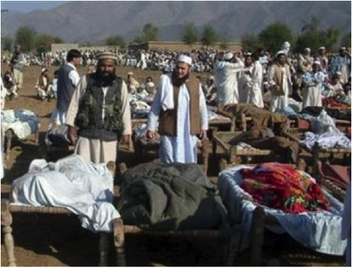 El funeral de 81 aldeanos, entre ellos 69 niños, en Chenegai en octubre de 2006. El misil