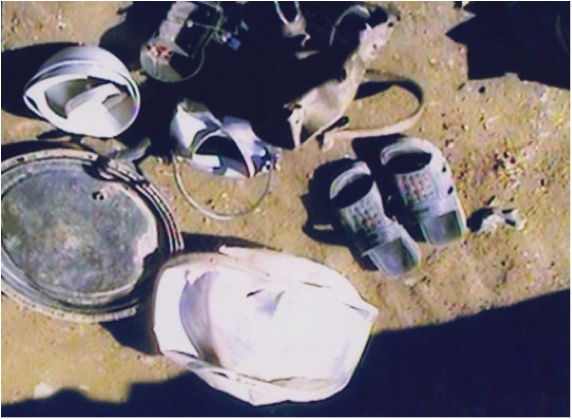 Los zapatos y otras pertenencias de los civiles muertos en un ataque con aviones no
