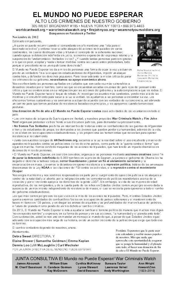 | JUNTA CONSULTIVA El Mundo no Puede Esperar/ War Criminals Watch |
