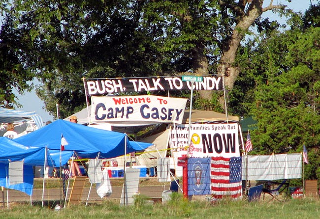 Sheehan montó con valentía el campamento Casey justamente a las afueras del