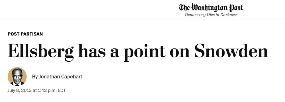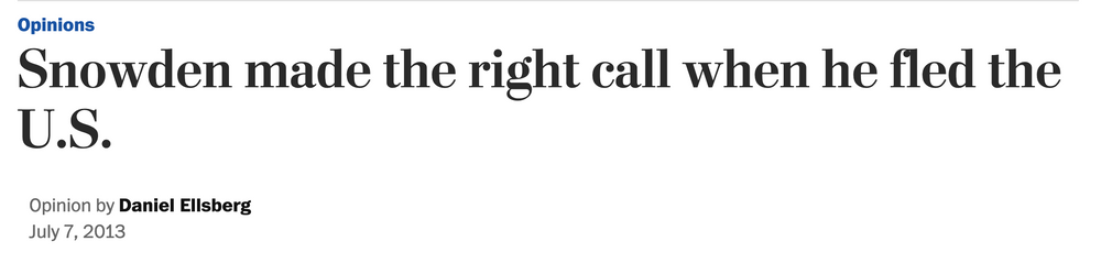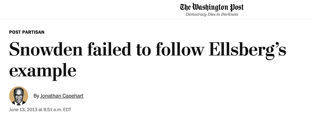 específicamente que Snowden había "fracasado" en seguir el ejemplo de Ellsberg.